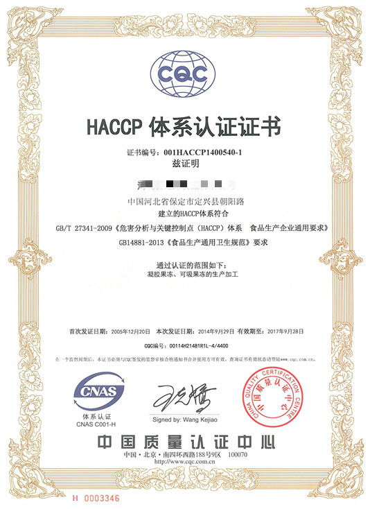 2003年10月公司按照国家质检总局20号令的要求顺利通过出口食品企业卫生注册和美国FDA注册。